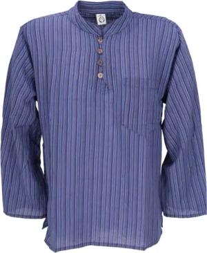 GURU SHOP Nepal Fischerhemd, Gestreiftes Goa Hippie Hemd, Yogahemd - Blau, Herren, Size:L