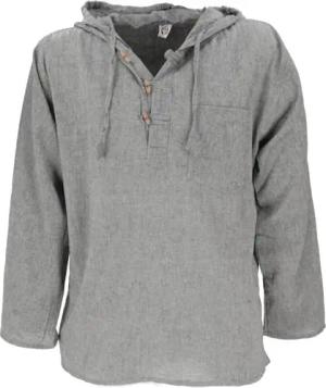 GURU SHOP Nepal Hemd, Goa Hippie Sweatshirt, Yogashirt, Schlupfhemd mit Kapuze - Grau, Herren, Size:M