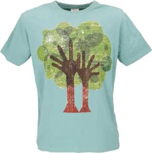 GURU SHOP Retro T-Shirt, Tree Save Earth T-Shirt - Ice/Aqua, Herren, Size:M