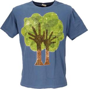 GURU SHOP Retro T-Shirt, Tree Save Earth T-Shirt - Tree/blau, Herren, Size:XL