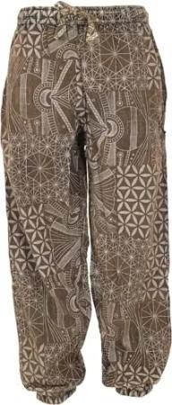 GURU SHOP Stonewash Yogahose, Unisex Baumwoll-Goa-Hose mit Allover Print - Braun, Herren, Size:S