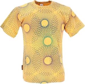 GURU SHOP Tibet & Buddhist Art T-Shirt, Fusion Mandala Stonewash T-Shirt - Gelb, Herren, Size:M