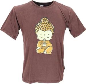GURU SHOP Tibet & Buddhist Art T-Shirt, Little Buddha Stonewash T-Shirt - Braun, Herren, Size:S