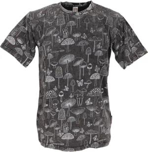 GURU SHOP Tibet & Buddhist Art T-Shirt, Pilz Stonewash T-Shirt - Schwarz, Herren, Size:XL
