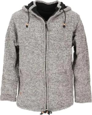 GURU SHOP Unisex Wolljacke aus Nepal, Warme Gefütterte Strickjacke Grau Melliert - Modell 3, Herren, Size:L