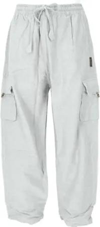 GURU SHOP Yogahose, Goa Baumwoll-Hose mit 2 Aufgesetzten Taschen - Hellgrau, Herren, Size:M