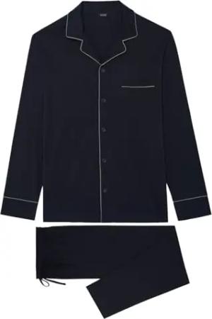 Herren Pyjama Long Vibe Pyjamaset, Oberteil: Kaschmir-Druck auf Camoufalge mit blauem Farbverlauf, unten: Marineblau, XXL