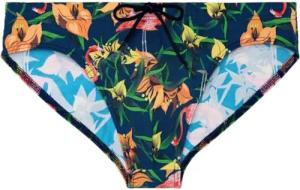 Herren Badehose Swim Briefs, Flamingo-Druck, rosa auf marinefarbenem Hintergrund, 48