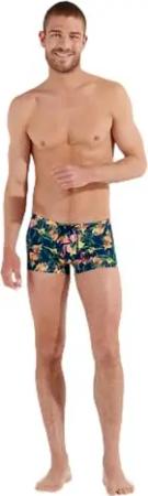 Dino Badeshorts, Blumendruck auf türkisfarbenem Hintergrund, 48