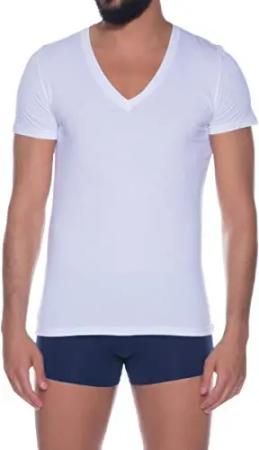 XINGDAO Herren col V Tencel Soft t Shirt Damen, Blanc, L