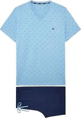 Herren Pyjama Court Indio Pyjamaset, Druck mit Kleiner Blume/Stern, Rosa und Blau, Marineblau, S