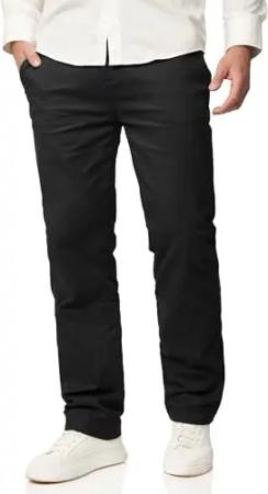 . Herren Chino Hose Regular-Fit mit Stretch Jeans Chinohose Straight-Leg Jeanshose Men's Pants DC_C-3004-Schwarz-W33/L32