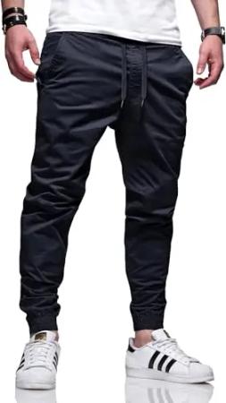 . Herren Hose Chino Jogger Jeans Chinohose Cargohose Freizeithose Gummibund Stretch BH_C-33-Navy-W30