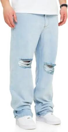 . Herren Jeans Ripped Loose-Fit Jeanshose 100% Baumwolle Denim Baggy Hose Straight-Leg Used Look Men's DC_JN-249-Light Blue-W38/L32