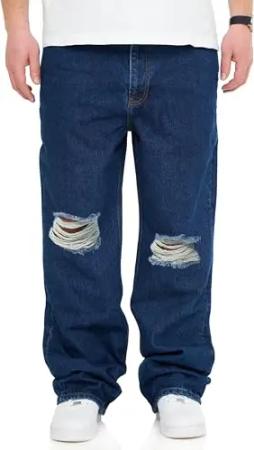 . Herren Jeans Ripped Loose-Fit Jeanshose 100% Baumwolle Denim Baggy Hose Straight-Leg Used Look Men's DC_JN-249-Indigo-W33/L32