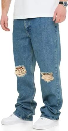 . Herren Jeans Ripped Loose-Fit Jeanshose 100% Baumwolle Denim Baggy Hose Straight-Leg Used Look Men's DC_JN-249-Ice Blue-W38/L32