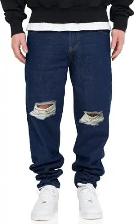 . Herren Jeans Tapered-Fit Jeanshose 100% Baumwolle Denim Baggy Hose Used Look Men's DC_JN-243-Indigo-W30