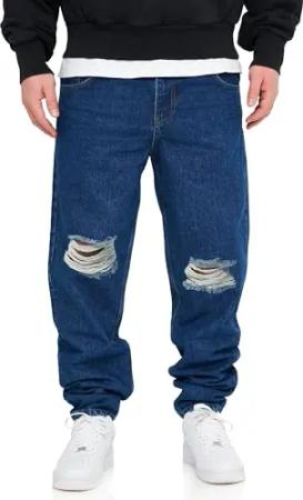 . Herren Jeans Ripped Loose-Fit Jeanshose 100% Baumwolle Denim Baggy Hose Straight-Leg Used Look Men's DC_JN-249-Medium Blue-W32/L32