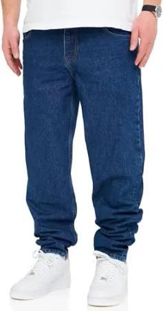 . Herren Jeans Tapered-Fit Jeanshose 100% Baumwolle Denim Baggy Hose Used Look Men's DC_JN-243-Indigo-W32