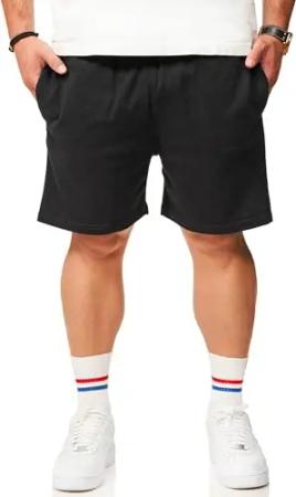 . Herren Kurze Hose Sweatshorts Sommershorts aus 100% Baumwolle - Bermuda-Shorts mit Gummibund für Männer Gym-Shorts - Modern-Fit BHS_Herren_5009-Black-XXL