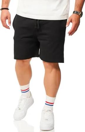 . Herren Kurze Hose Sweatshorts Sommershorts aus 100% Baumwolle - Bermuda-Shorts mit Gummibund für Männer Gym-Shorts - Modern-Fit BHS_Herren_5009-Black-XS