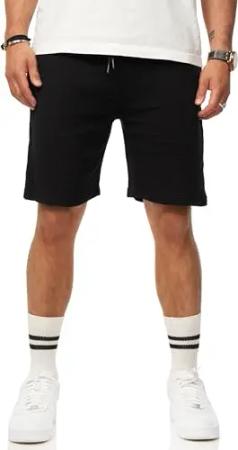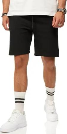 . Herren Shorts Kurze Hose Feinstrick Textur Luftig Leichte Bermuda Men's Sommershorts Männer Sommer-Look Regular-Fit CR_2161-Black-S