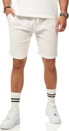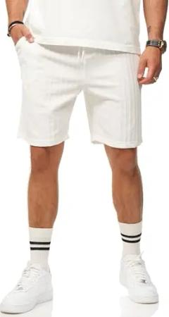 . Herren Shorts Kurze Hose Feinstrick Textur Luftig Leichte Bermuda Men's Sommershorts Männer Sommer-Look Regular-Fit CR_2161-Ecru-M