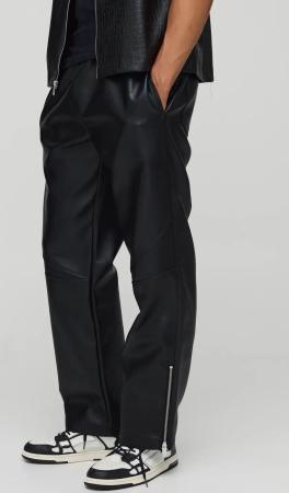 Elasticated Waist Pu Relaxed Zip Hem Trouser - Black - L, Black