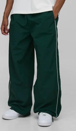 Parachute Fit Nylon Piping Detail Trousers - Forest - L, Forest