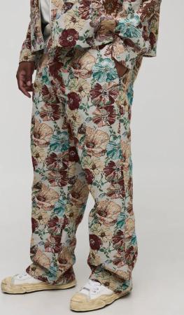 Plus Floral Tapestry Relaxed Fit Trousers - Multi - 42, Multi