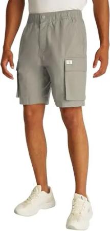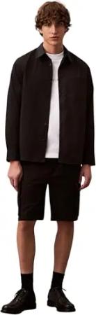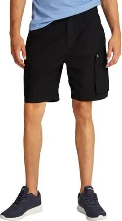 Herren Cargo Shorts Washed mit Gummizug, Schwarz (Ck Black), 32W