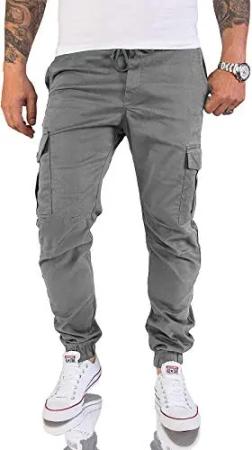 Herren Cargohose Chinohose Outdoor Herrenhose Tapered Jogging Pants Hose mit Taschen Beintaschen Männer H-179 Grau W31 L32
