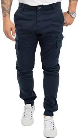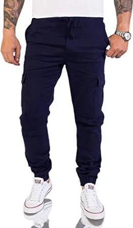 Herren Hose Cargohose Tapered Fit Chino Hose Cargo Hose Jogging Casual Pants Männerhose Freizeithose Hosen Herrenhose RC-2189 Navy W36 L34
