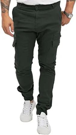 Herren Hose Cargohose Tapered Fit Chino Hose Cargo Hose Jogging Casual Pants Männerhose Freizeithose Hosen Herrenhose RC-2189 Dunkelgrün W30 L32