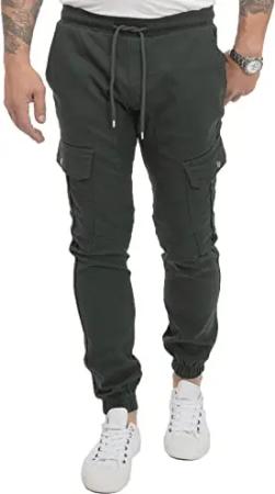 Herren Hose Cargohose Tapered Fit Chino Hose Cargo Hose Jogging Casual Pants Männerhose Freizeithose Hosen Herrenhose RC-2189 Dunkelgrün W34 L34