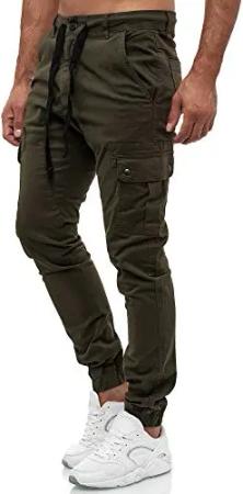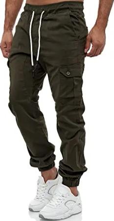 Herren Cargohose 18525 – Regular Fit Jogger Chino mit Cargo-Taschen – Stylische Freizeithose mit Kordelzug & Bündchen – Bequeme Männerhose – Größe W36 Khaki