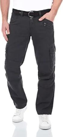 Cargohose Herren mit Gürtel BenitoTZ Loose Fit Cargo Hose Taschen Baumwolle, Farbe:Dark Grey (9889), Größe:32W / 34L
