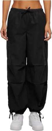 Damen Hose Ladies Wide Crinkle Nylon Cargo Pants Black XXL