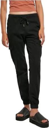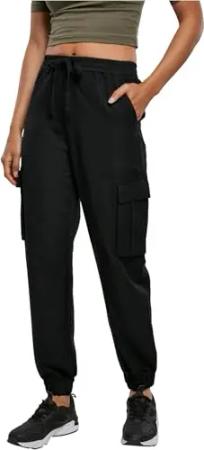 Damen High Waist Cargo Jogging Pants – Jogginghose im Regular Fit mit hohem Bund, Cargotaschen mit Knopfverschluss, Baumwolle mit Stretch für Streetwear und Freizeit,Schwarz,M