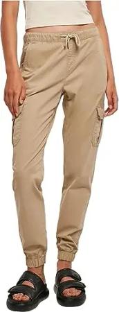Damen Ladies High Waist Cargo Comfort Jogging Pants Hose, softtaupe, L