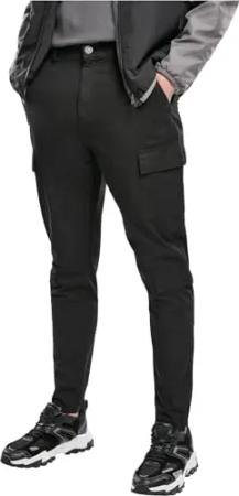 Herren Camouflage cargobroek Hose, Schwarz (Black 7), 34 EU