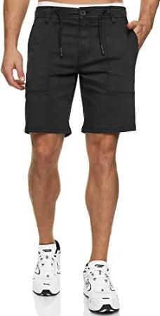 Herren INDiago Stretch Shorts aus Baumwolle mit Kordel | Chinoshorts Herrenshorts für Männer Black, XXL