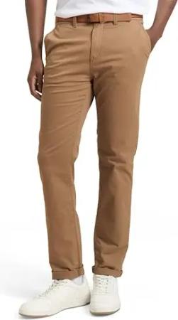 Herren Slim Fit Chino Hose mit Gürtel 11634 - Honey Camel Beige 32W / 36L