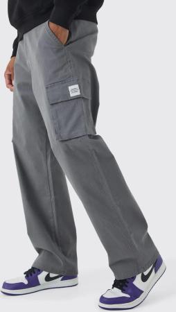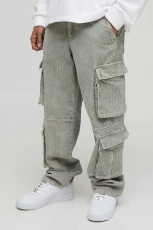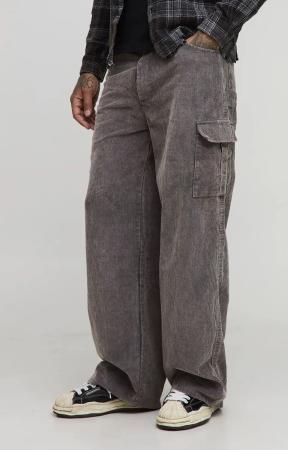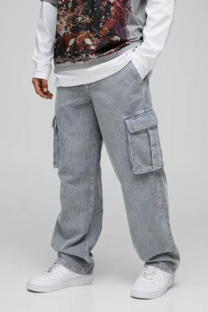 Acid Wash Relaxed Cord Cargo Trouser - Charcoal - 30R, Charcoal