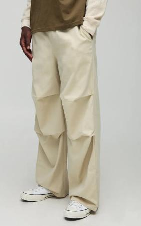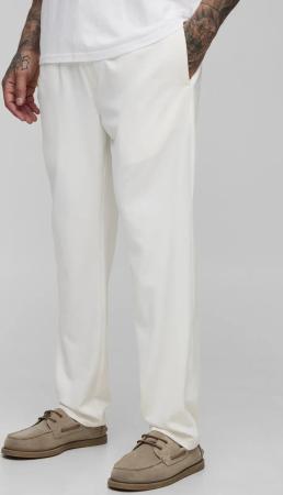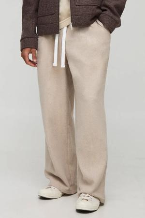 Relaxed Fit Boucle Elasticated Waist Trouser - Stone - L, Stone