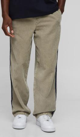 Lockere Cord-Hose mit elastischem Bund und Acid-Waschung - Taupe - 28R, Taupe
