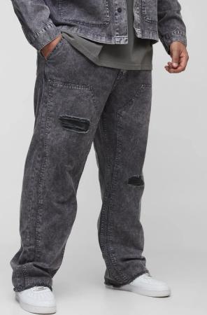 Plus lockere zerrissene Hose mit Acid-Waschung - Grau - XXXL, Grau