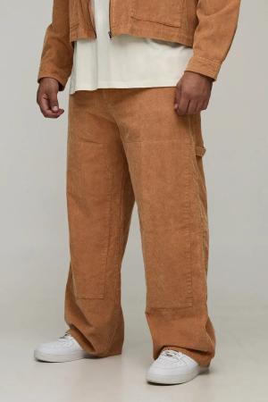 Plus Washed Cord Relaxed Fit Carpenter Trousers - Beige - 38, Beige