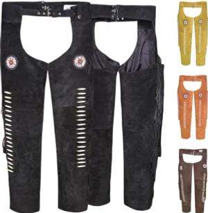 Chaps Fransenhose Reiter Cowboy Western Lederchaps Lederhose (DE/NL/SE/PL, Numerisch, 54, Regular, Regular, Schwarz)