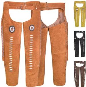 Chaps Fransenhose Reiter Cowboy Western Lederchaps Lederhose (DE/NL/SE/PL, Numerisch, 60, Regular, Regular, Kastanienbraun)